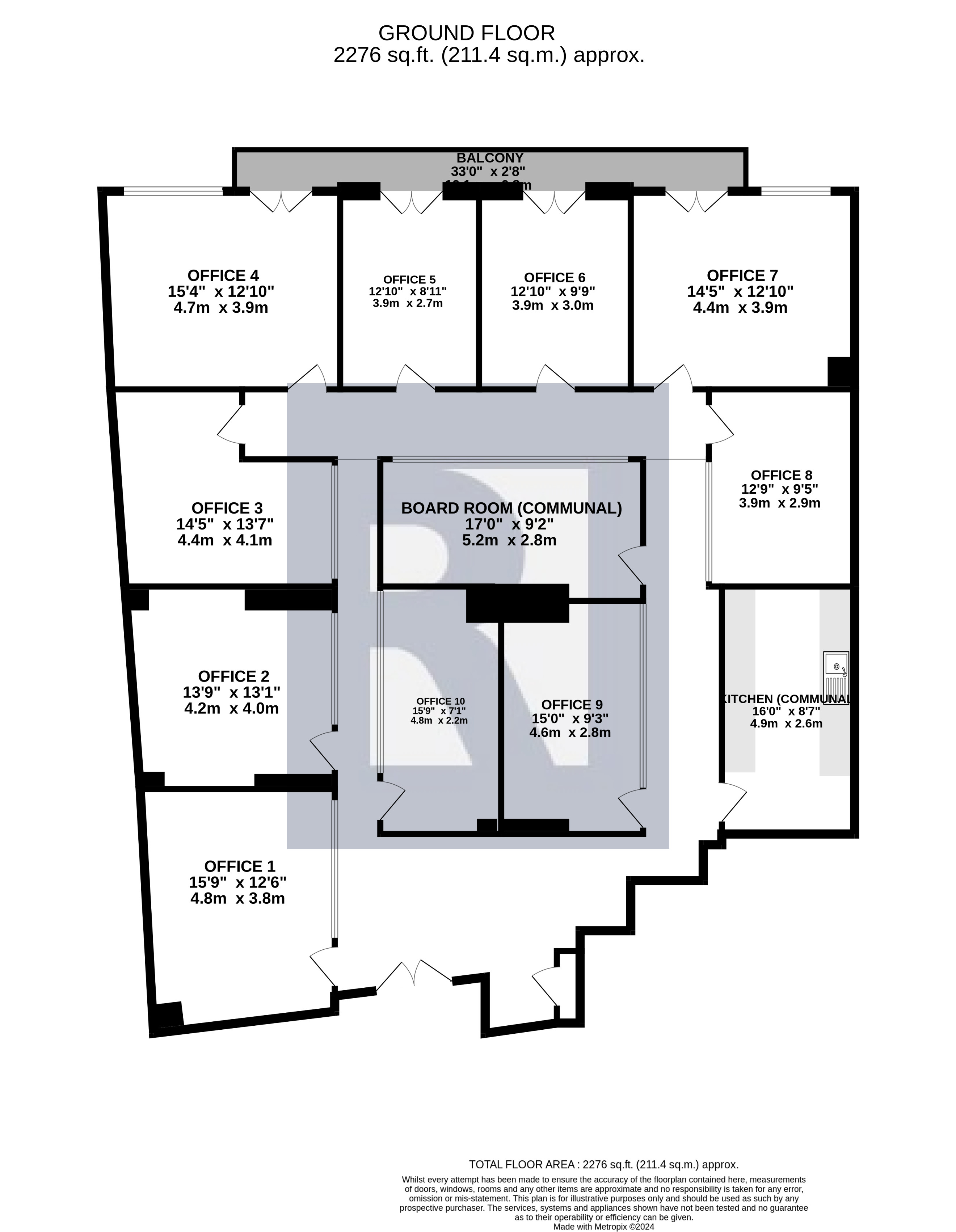 Each individual unit benefits from its own controllable air conditioning and heating unit. Communal facilities include a kitchen, boardroom and washroom facilities, plus a comfortable waiting/reception area at the entrance for visiting clients.